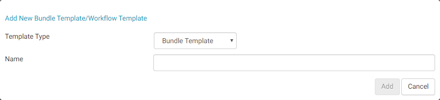 • Tap the add a workflow button to open the following flyout. Select the desired bundle or workflow to add from the drop-down, enter a name, and tap the Save button.